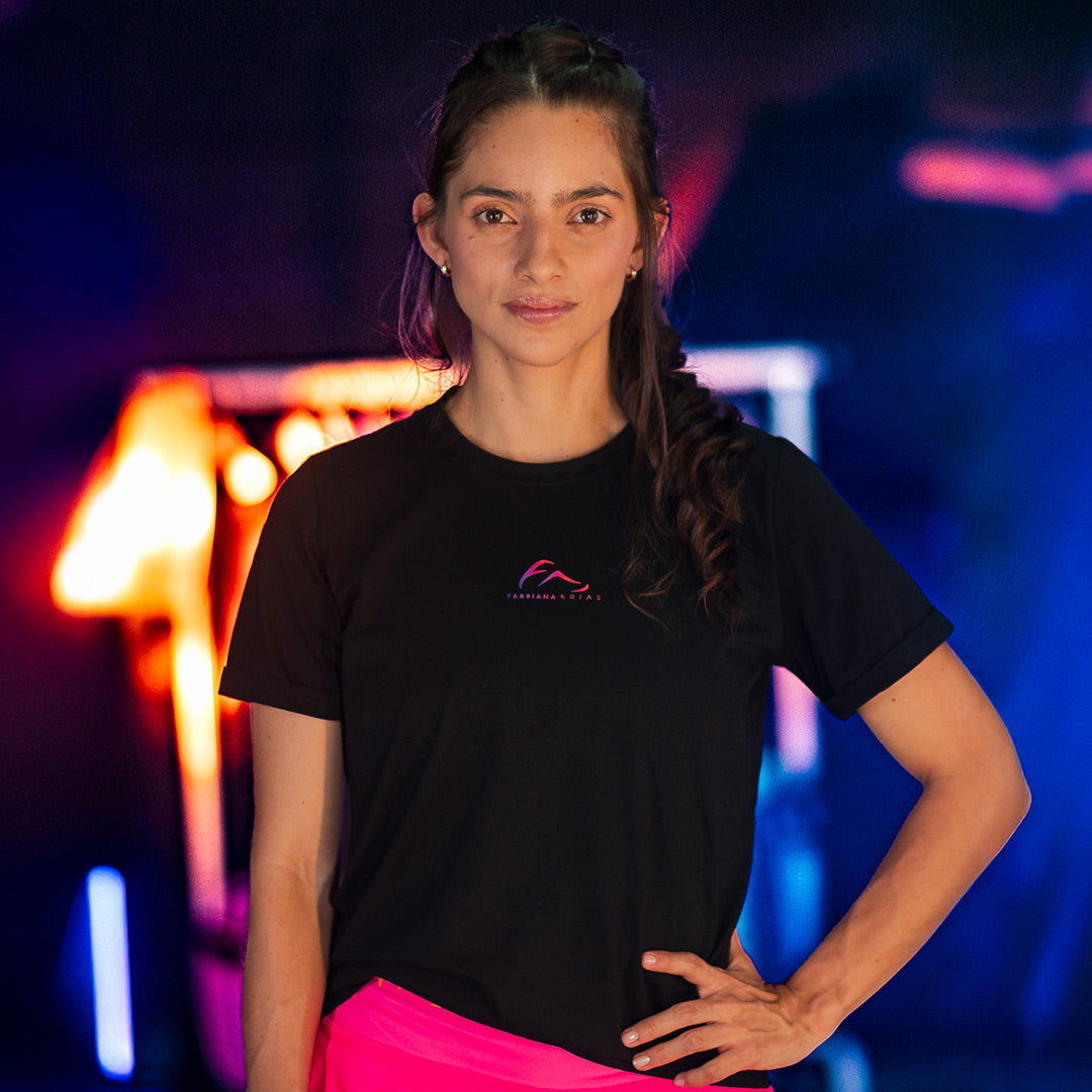La camiseta Sueños representa la fuerza de creer en uno mismo y la determinación de hacer realidad cada meta. Su diseño combina la elegancia del negro con detalles en una gama de fucsia-naranja. Es una prenda pensada para quienes viven cada día como un paso hacia sus sueños.