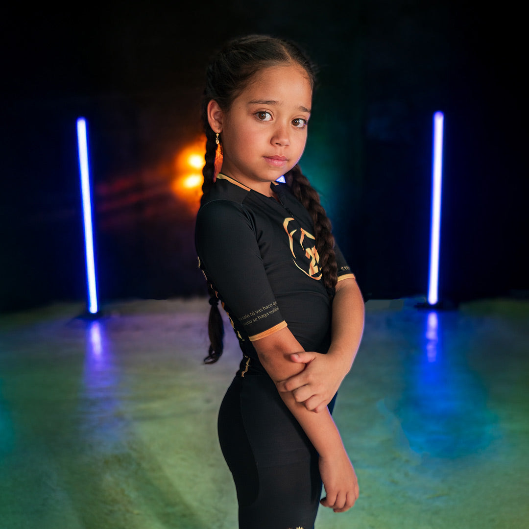 El Uniforme Leyenda es la representación de la grandeza en la pista. Con un diseño en negro profundo y detalles dorados que evocan triunfo y prestigio, está creado para quienes entrenan con disciplina y coraje, convirtiendo cada kilómetro en parte de su historia.