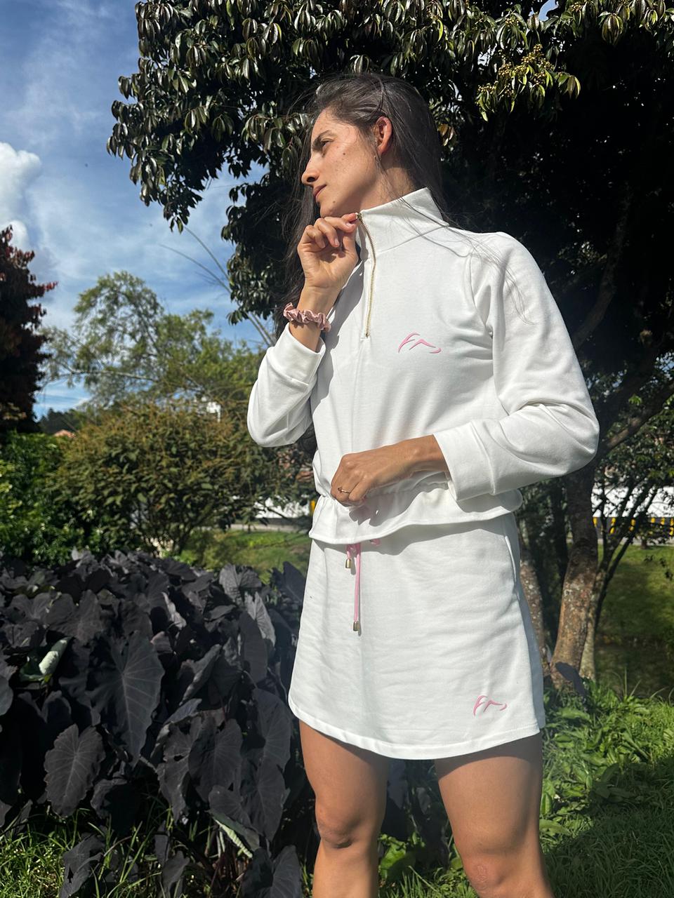 Elegance es un set que destaca por su diseño limpio, femenino y moderno. La combinación de cortes delicados con materiales cómodos crea una prenda versátil,